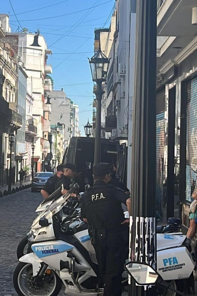 En un posteo en X emitido pasadas las 17.30, Llorente dijo que los policías llegaron a las puertas de la sede de Bolívar «alrededor de las 12.30» y permanecían en el lugar a la hora de la publicación de su mensaje.