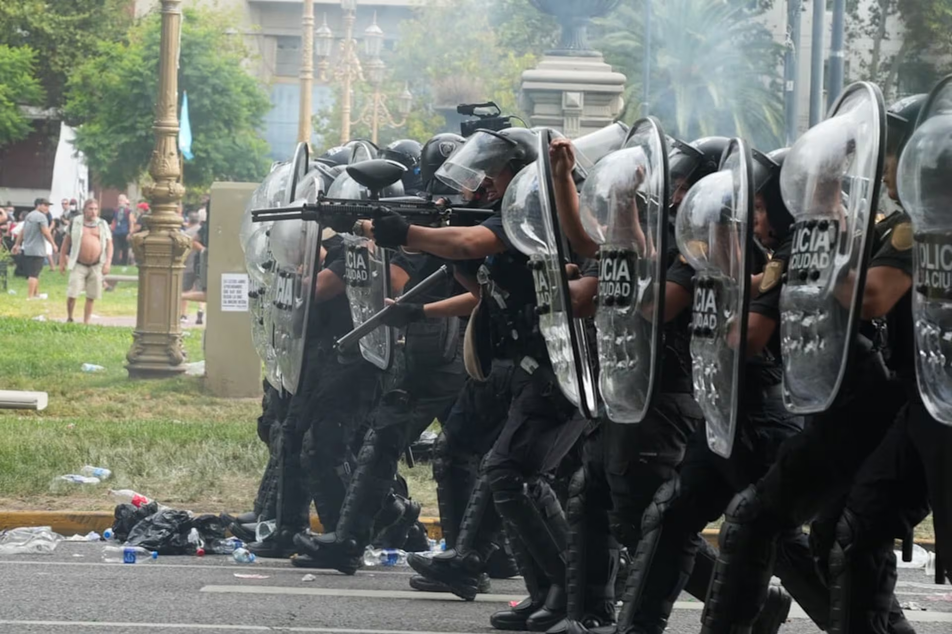 Pasadas las 15, la policía y la Gendarmería avanzaron sobre manifestantes en Plaza Congreso, que protestaban contra el proyecto de reforma laboral impulsado por el Gobierno. Las fuerzas de seguridad dispersaron a la multitud con gases lacrimógenos y camiones hidrantes, mientras algunos dirigentes denunciaban que jubilados y trabajadores fueron los primeros en recibir la represión.