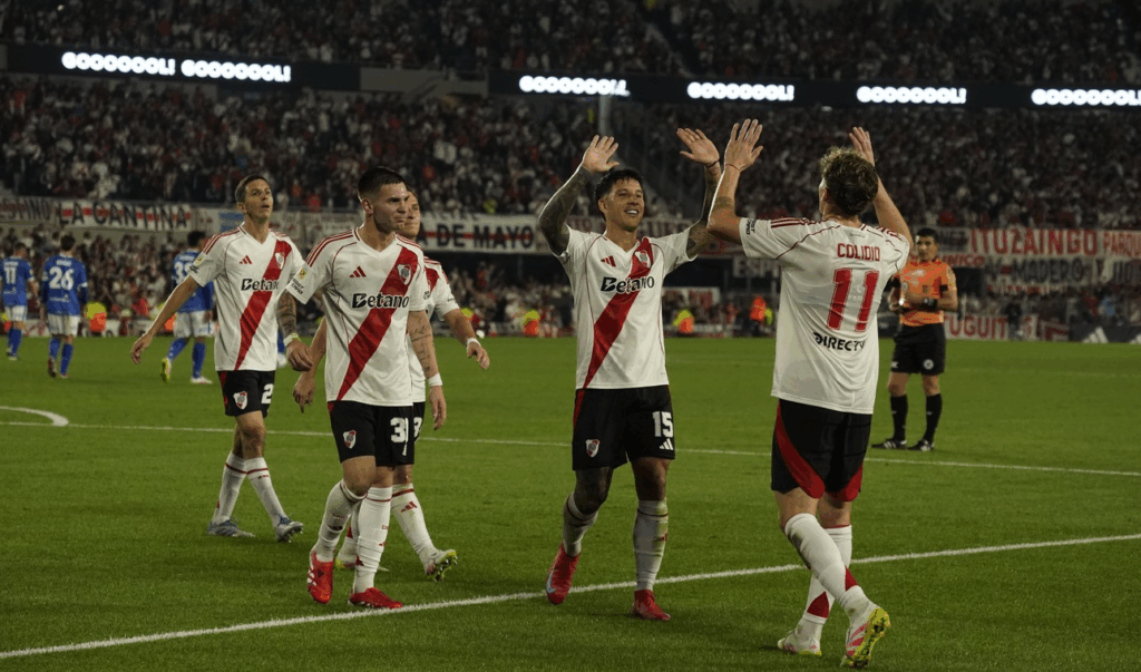 Los goles del “Millonario” fueron convertidos por los delanteros Sebastián Driussi, a los 14 minutos; y Facundo Colidio, a los 28; el volante Ignacio Fernández, en 33 minutos; y el atacante Miguel Borja, de penal, en el noveno minuto añadido.