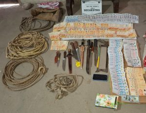 Con orden de allanamiento solicitada por la Fiscal, se realizaron tres allanamientos en los domicilios de los investigados, desde donde se secuestraron herramientas de faena, carne, dinero, un arma de fuego y un ternero, entre otros elementos de interés para la causa.