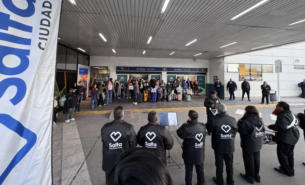 Con la presencia del Ballet Balderrama y la Banda Municipal, la Municipalidad dio la bienvenida a visitantes de Córdoba, Neuquén y Mendoza en el aeropuerto Martín Miguel de Güemes.