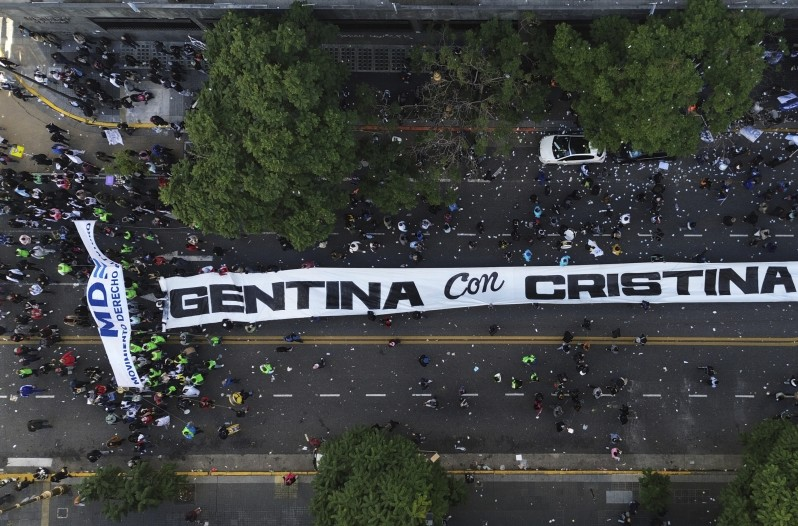 «El peronismo tiene que perder el miedo. Cristina se inmola por muchos que se quedan escondidos debajo de la cama. Los jueces se tienen que dar cuenta de que no tenemos miedo y estamos dispuestos a morir por los derechos adquiridos», dijo Estela de 63 años. A su lado pasaba un hombre con la leyenda «Cristina es pueblo» pintada en su cabeza pelada.
