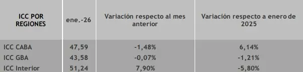 n el análisis regional, el Interior fue la zona con mayor mejora mensual, al registrar una suba del 7,90%. En cambio, la Ciudad Autónoma de Buenos Aires (CABA) mostró una baja del 1,48%, mientras que el Gran Buenos Aires (GBA) prácticamente no presentó variaciones, con un descenso marginal del 0,07%.