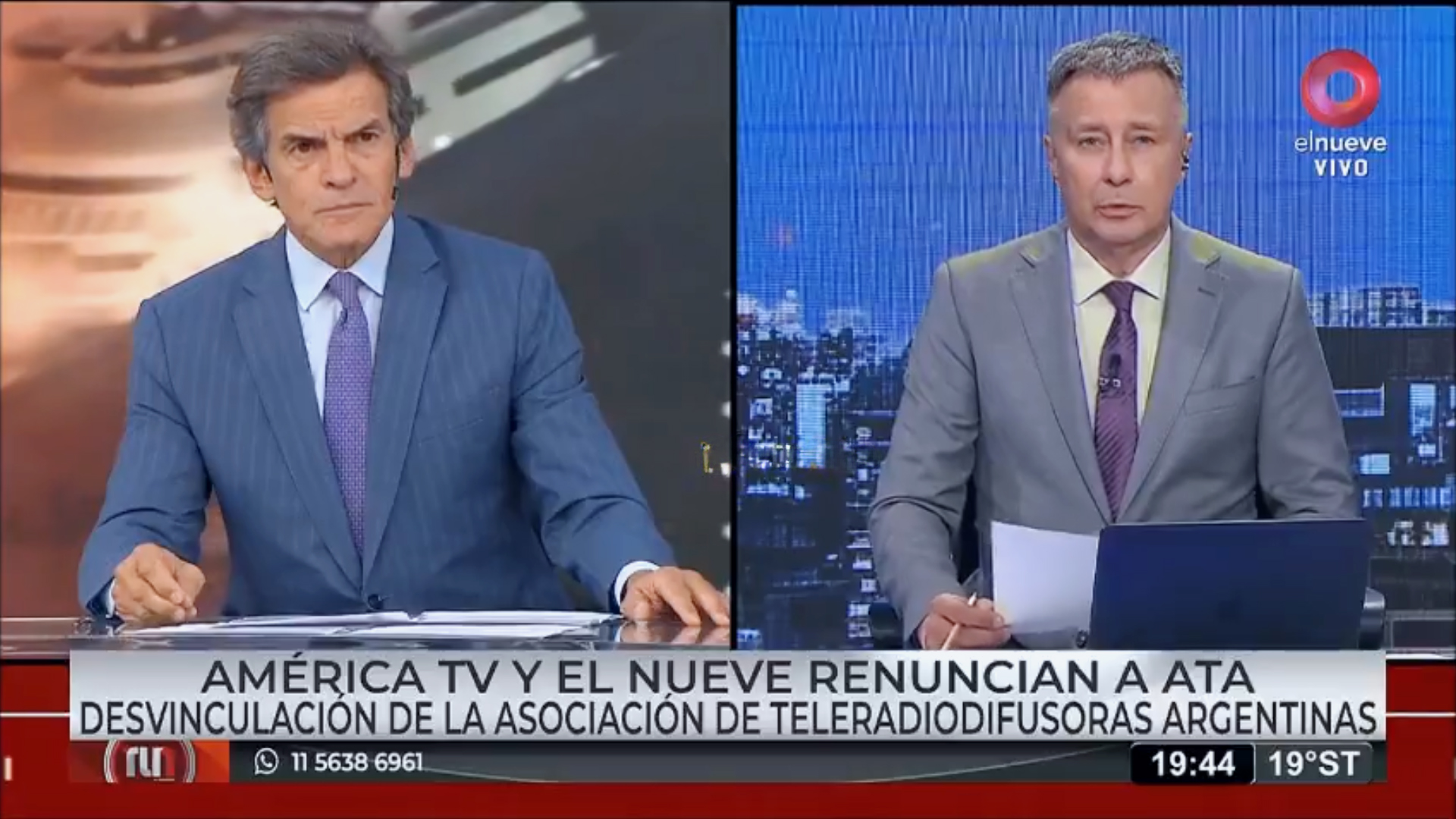 América TV y Canal 9 anunciaron este miércoles su renuncia a la Asociación de Teleradiodifusoras Argentinas (ATA). El anuncio se realizó en un inédito dúplex entre ambos canales, donde los conductores de los noticieros centrales leyeron, en forma cruzada, los comunicados oficiales de cada empresa.